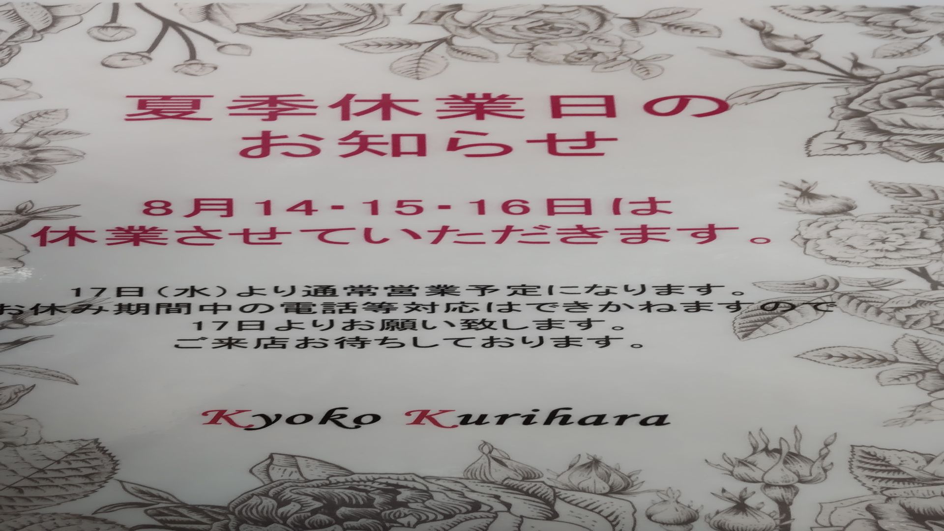 翌17日水曜日より通常営業予定ですので、ご連絡、お問い合わせ等17日からになりますのでよろしくおねがいします。今後もKyoko Kuriharaをよろしくおねがいします🙇✨